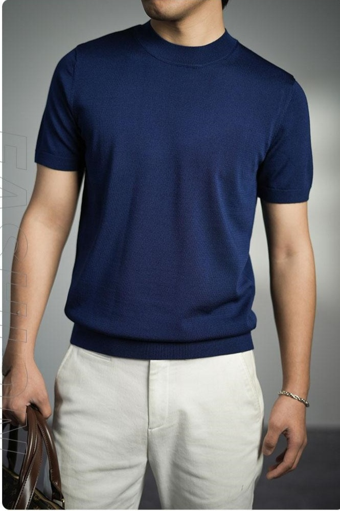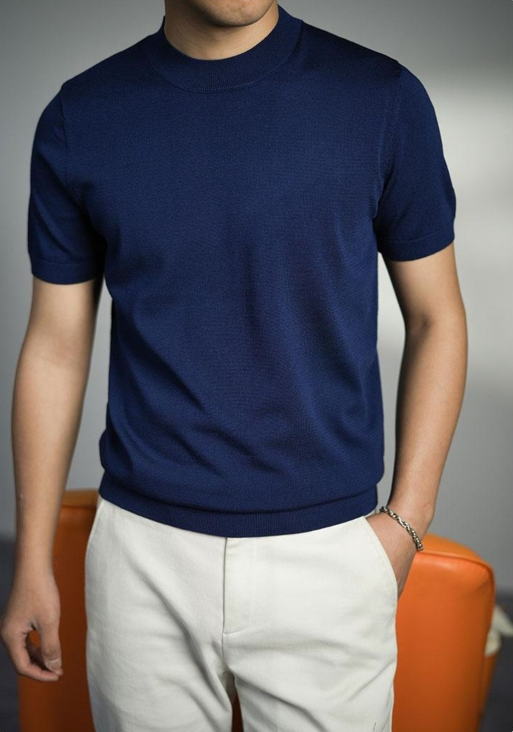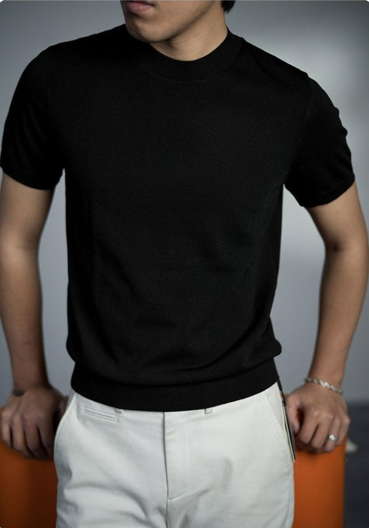 インポート糸使用の高品質メンズニットTシャツ正面画像