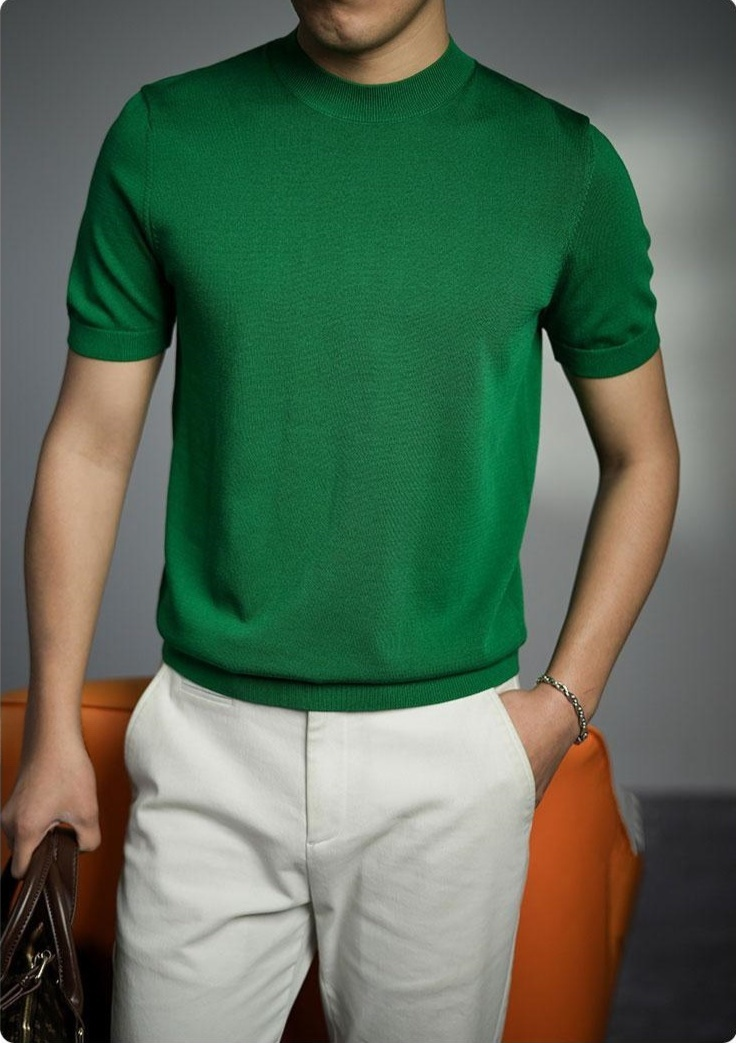春夏に最適なメンズニットTシャツの着心地イメージ